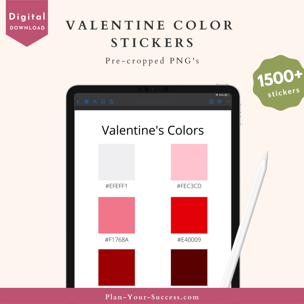 This collection of valentine color digital stickers has a good variety of designs that bring color and life into your planner.